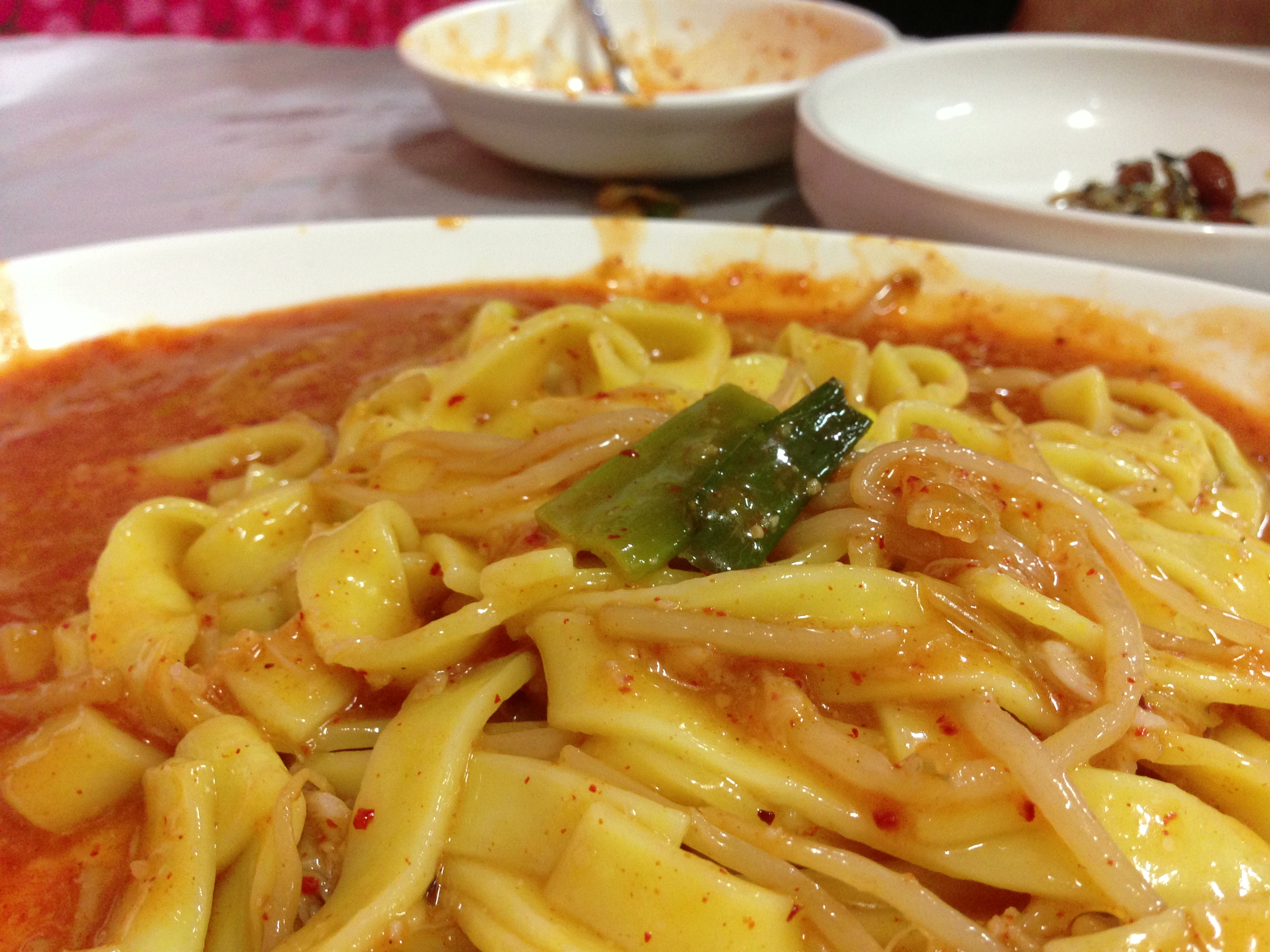 밥에 매콤한 가오리찜을 얹어서 먹다 보면 어느새 공깃밥은 안드로메다로 가 있기 마련인데 찜을 절반 정도 먹었을 때 재빨리 칼국수 사리를 시켜놔야 한다.