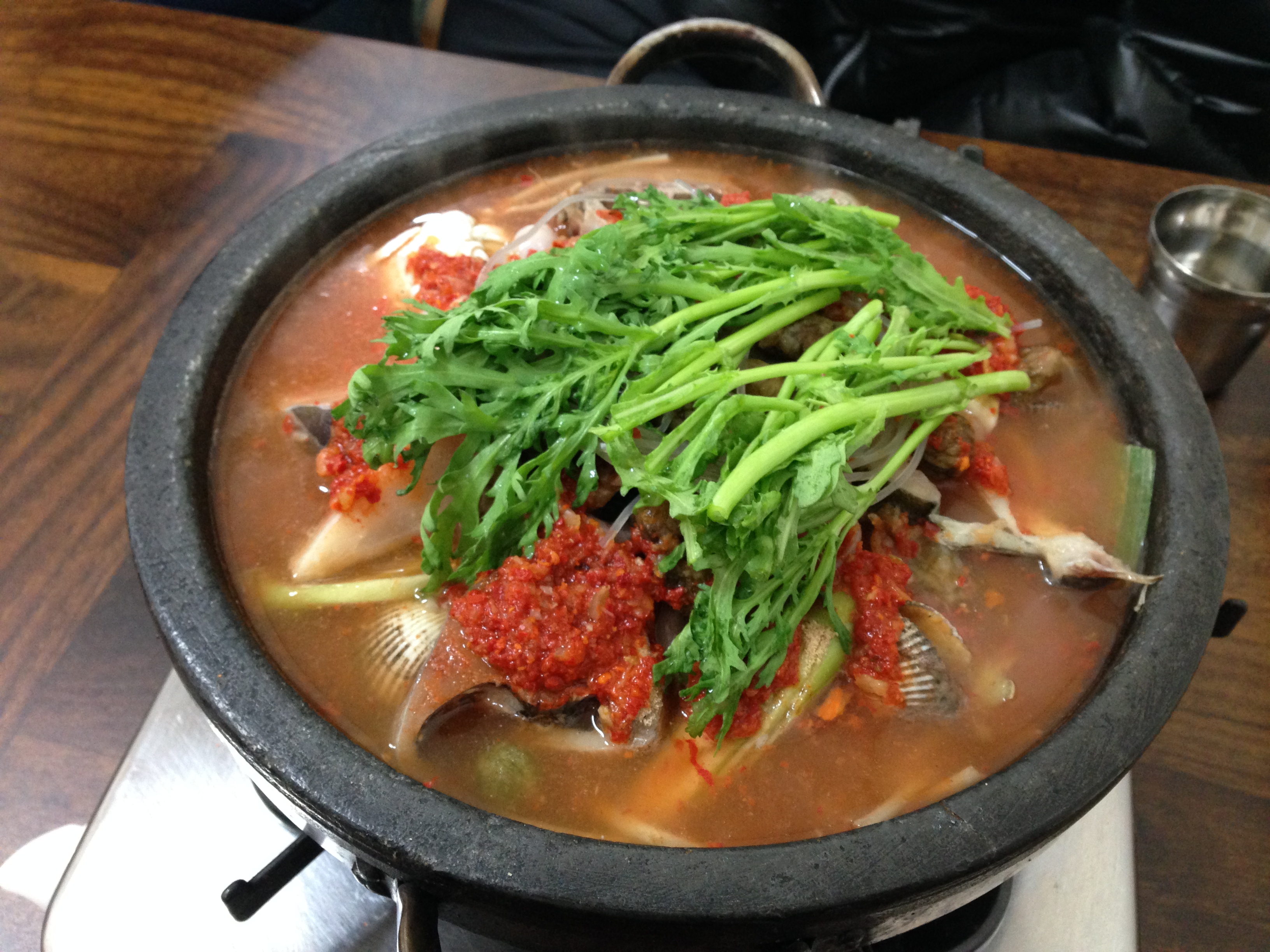 해물탕은 생선과 게, 미더덕 등 각종 해산물이 들어간 평범한 맛이다.
