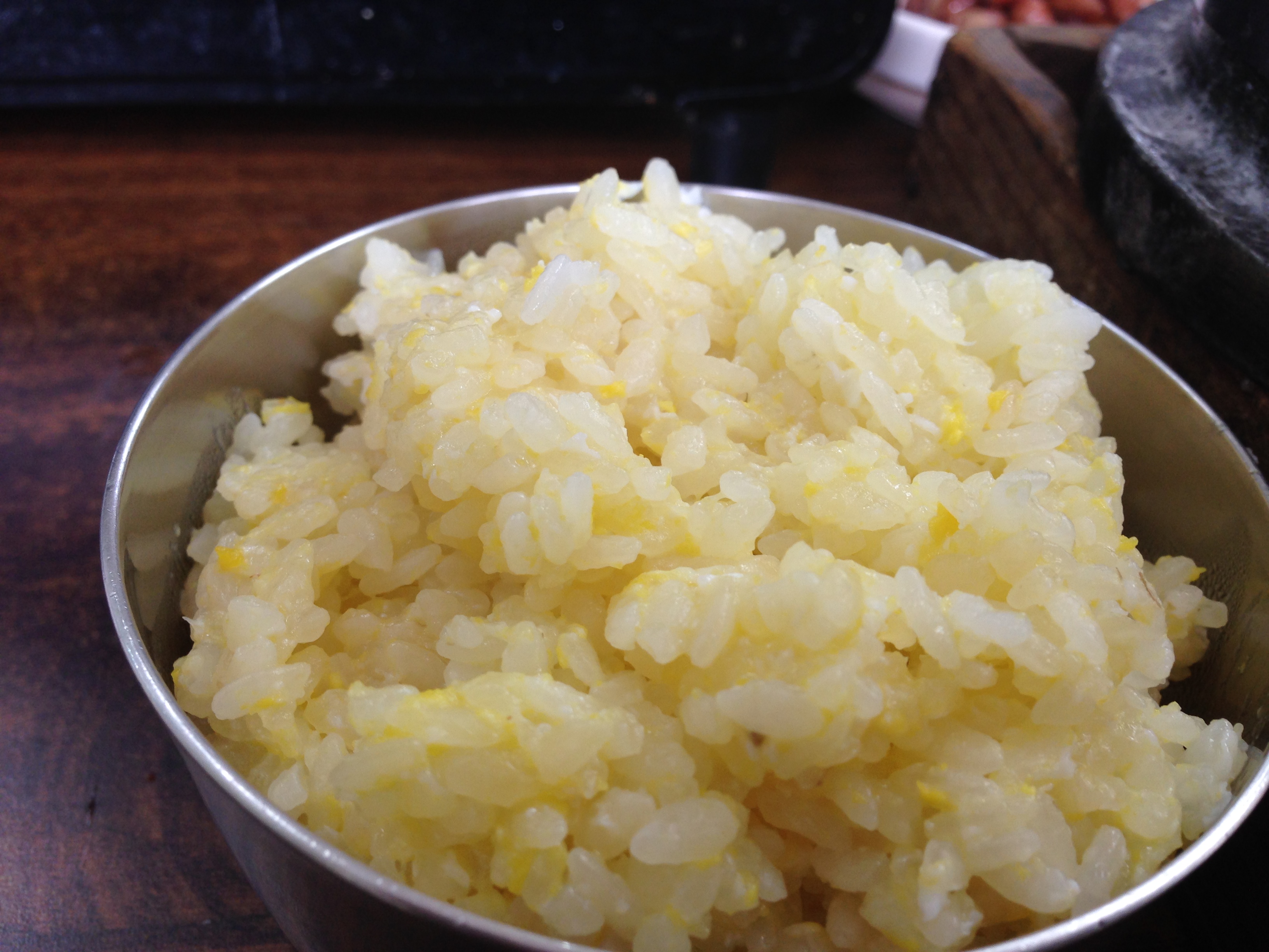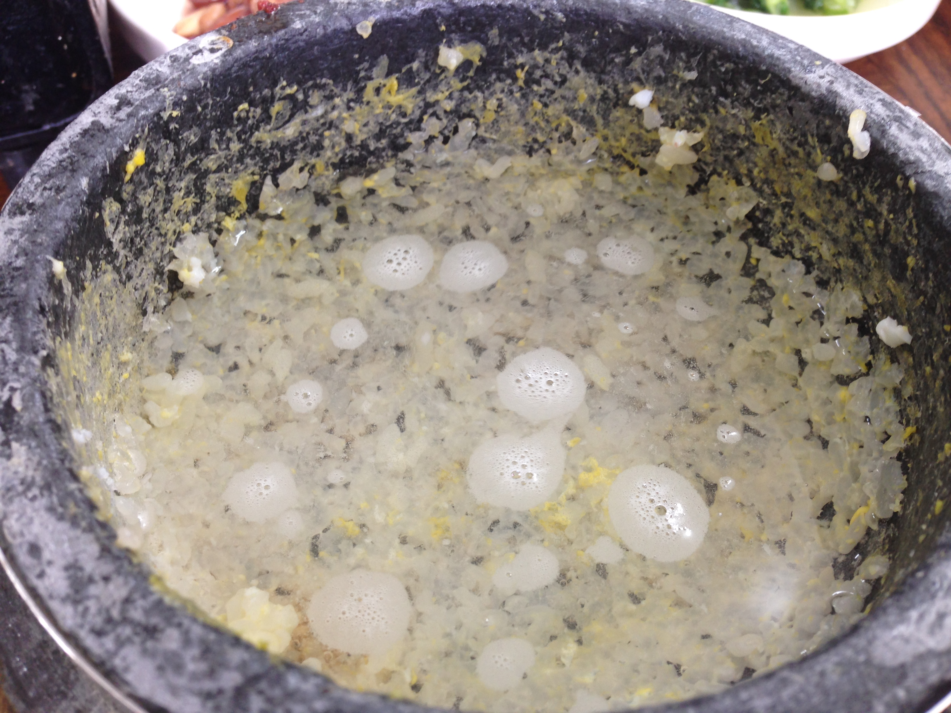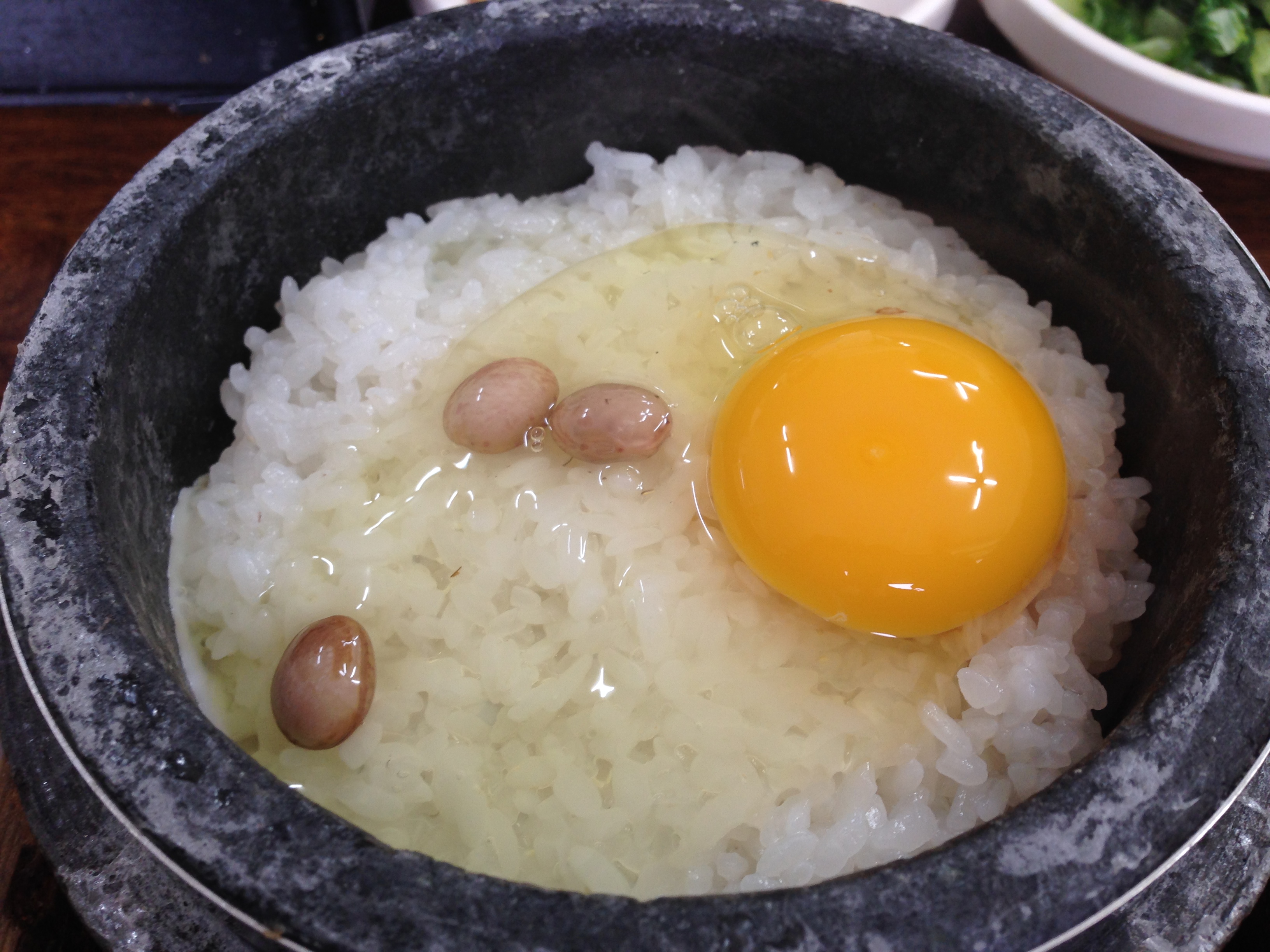 뜨거운 돌솥밥에 날계란을 깨어 먹을 수 있게 나온다.