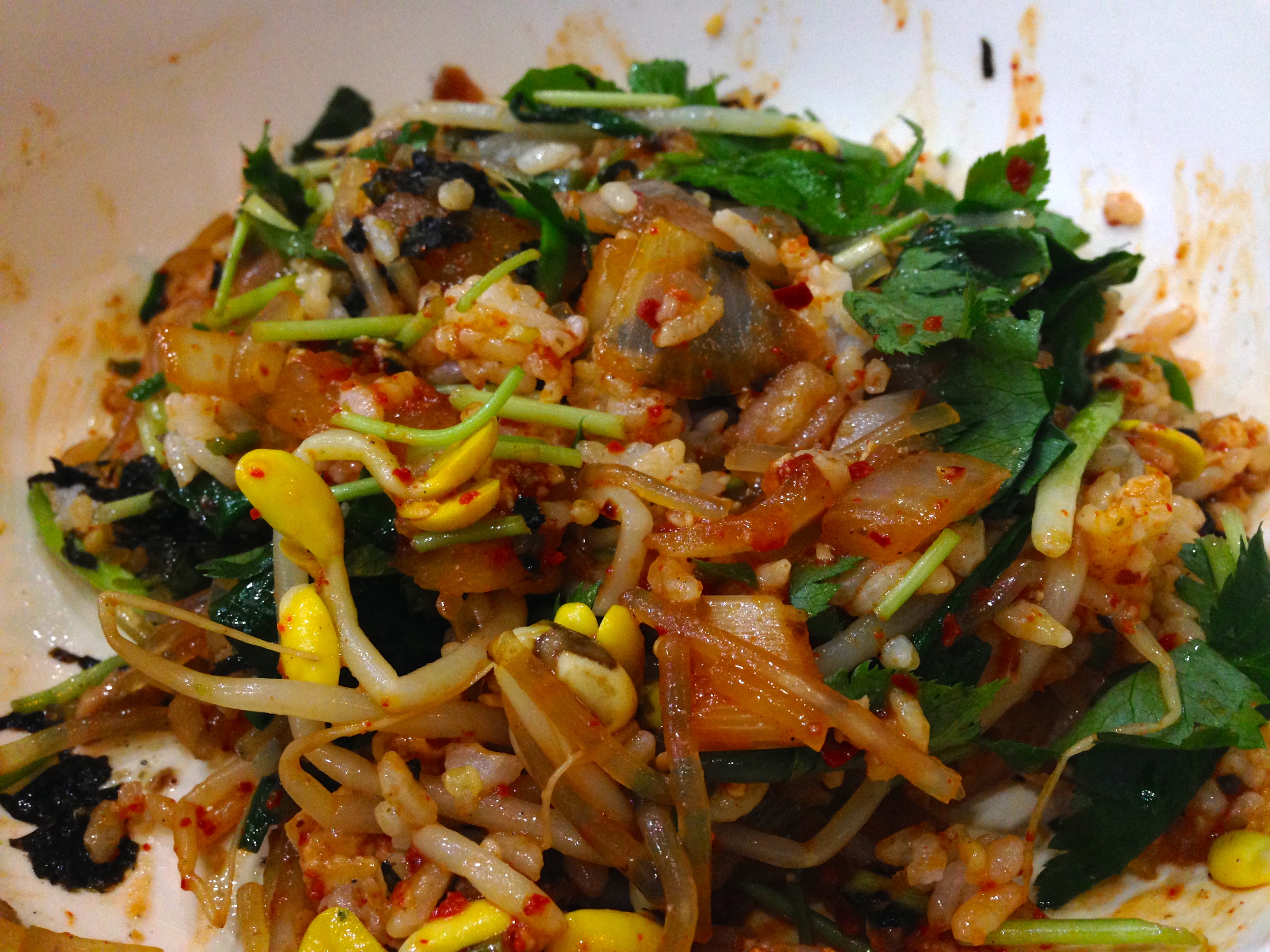 ‘별 거 없어 보이는’ 재료로 매콤하게 끓여낸 이 친구를 나물과 공기밥에 끼얹어 쓱싹쓱싹 비비면 언제 한 그릇을 다 먹었나 화들짝 소스라친다.