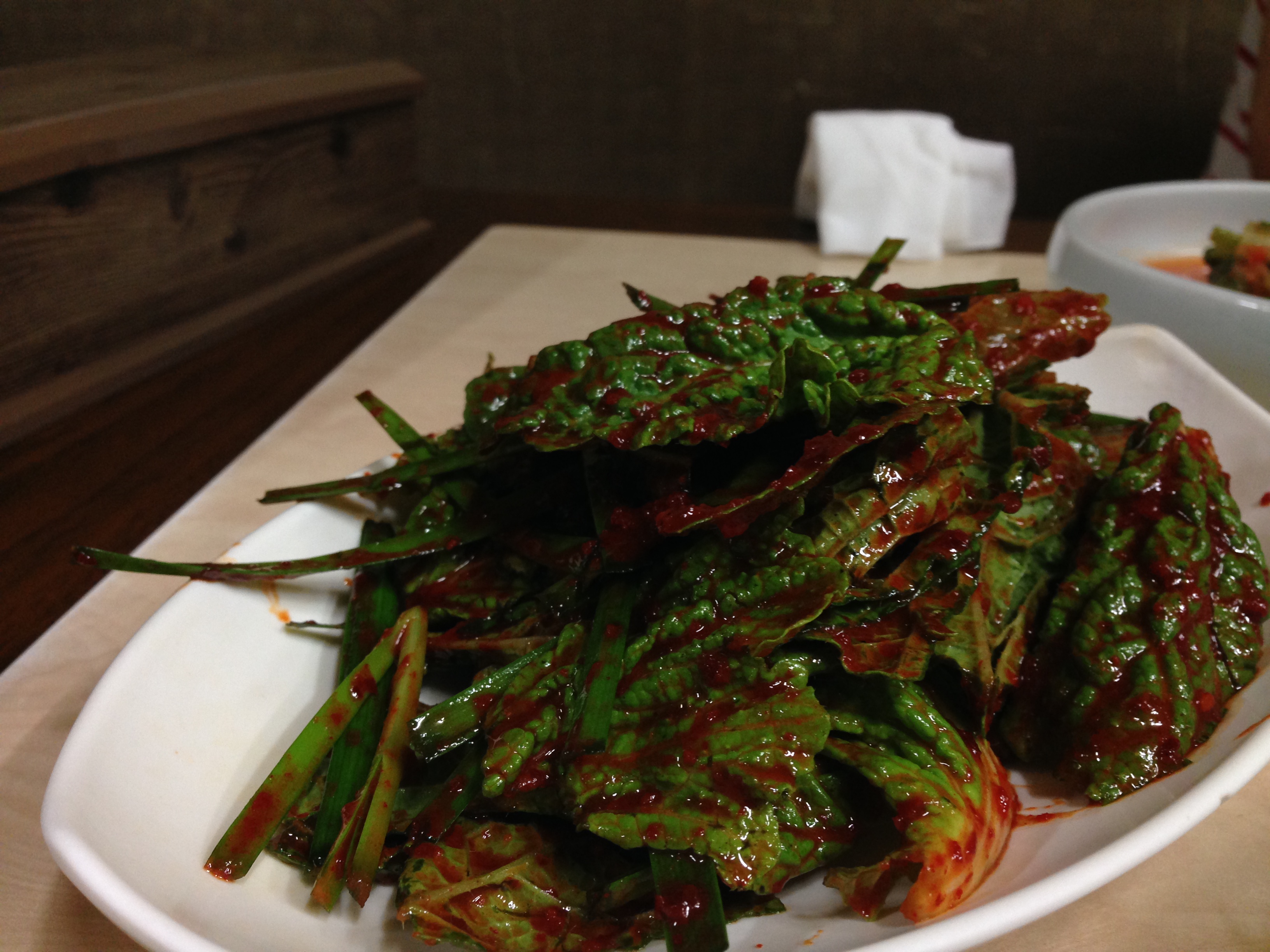 두 종류의 겉절이(재래기)를 주는데 고기 간이 그렇게 세지 않기 때문에 고춧가루 기본 베이스에 새콤한 맛이 살짝 나는 겉절이에 더 젓가락이 간다.
