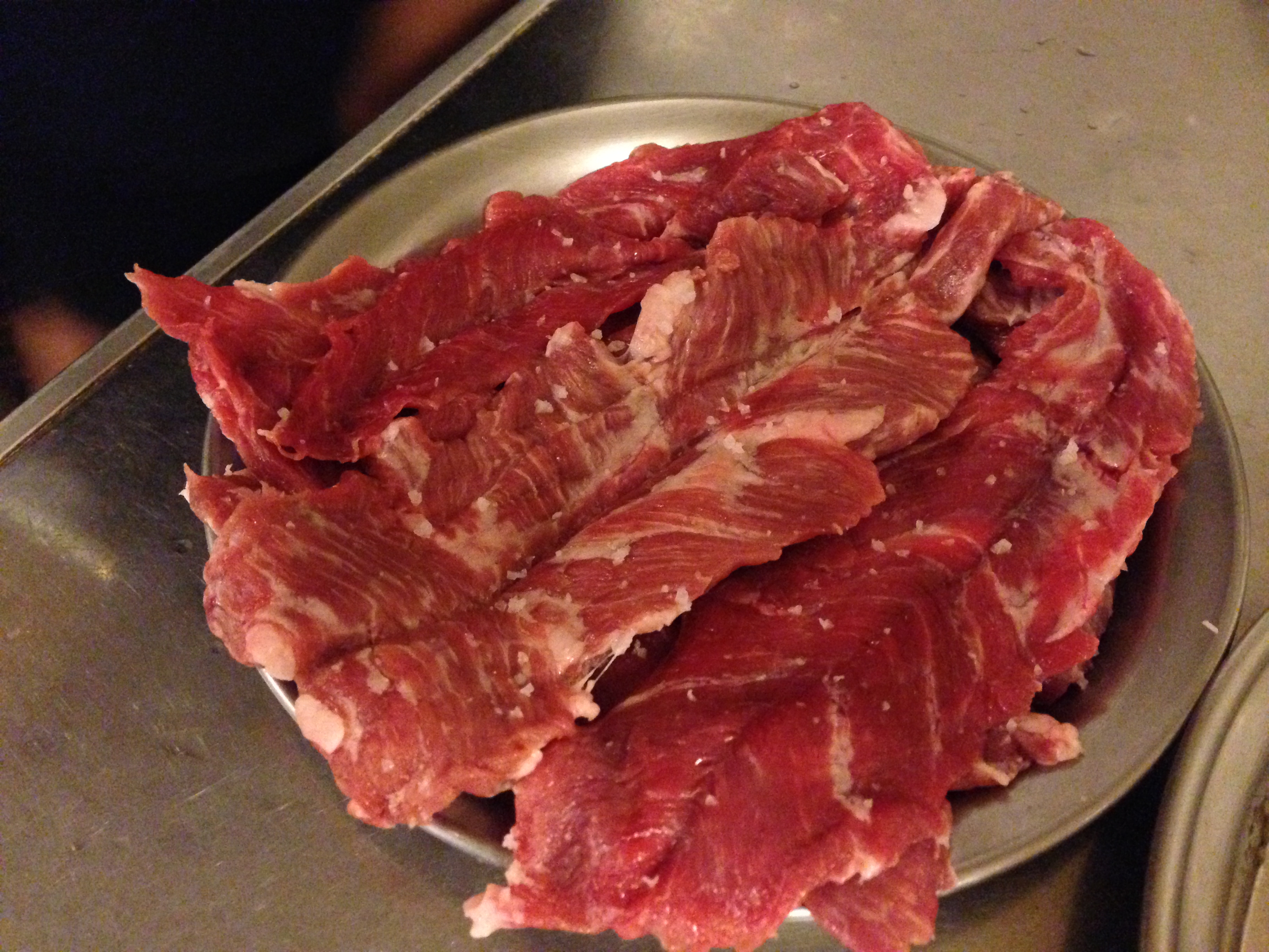 생갈매기살을 시키면 갈매기살이 원래 어떻게 생겼는지 짐작할 수 있다.