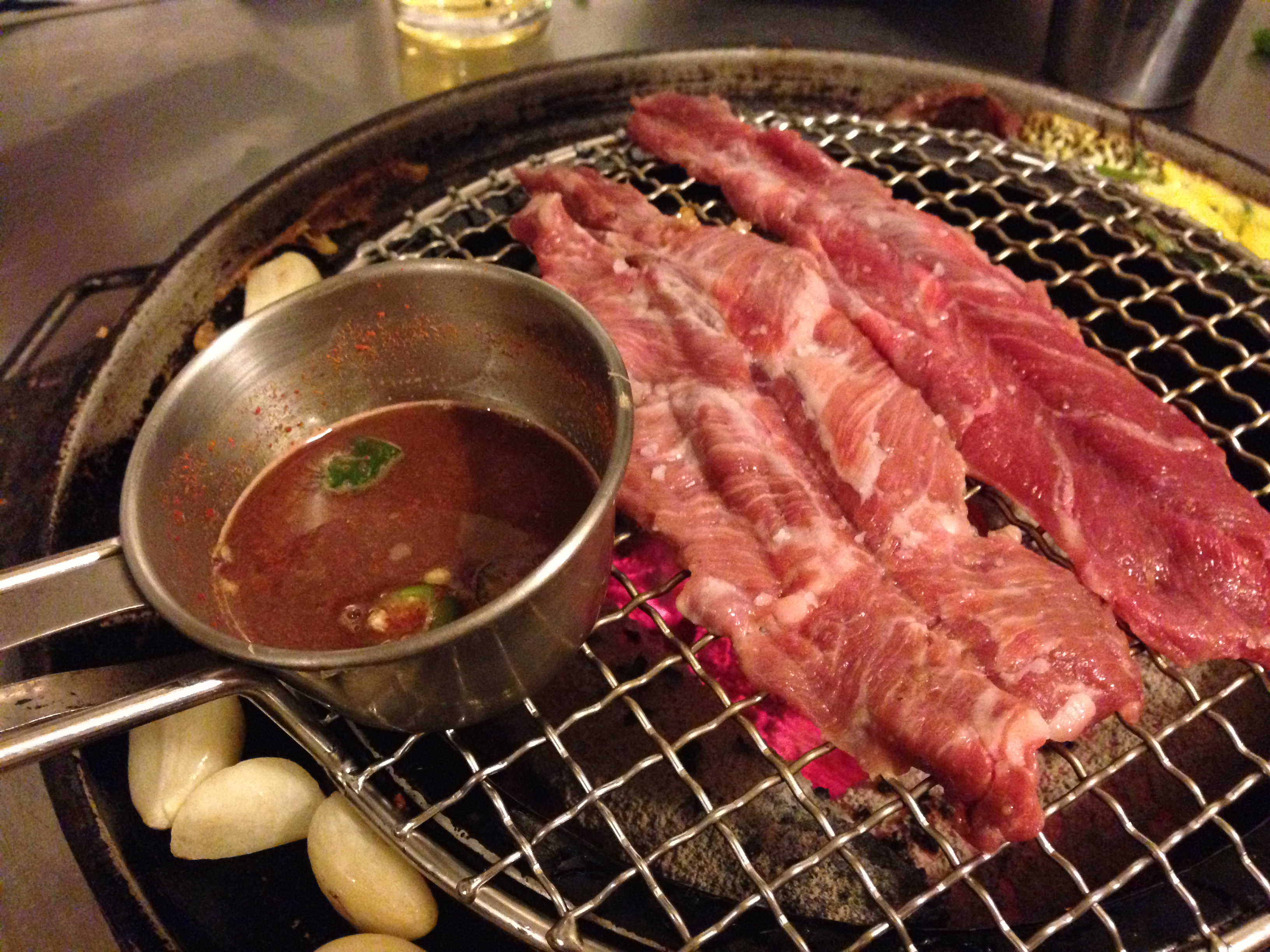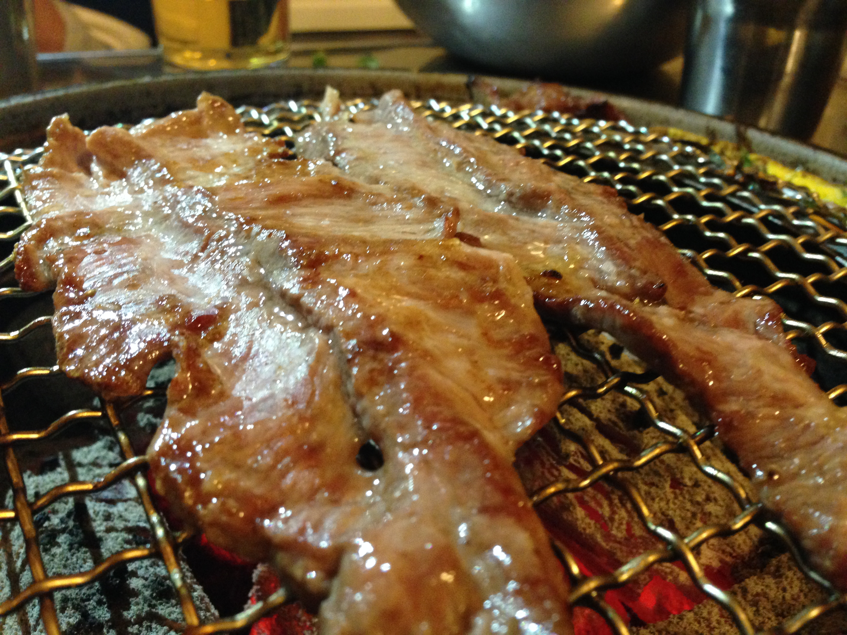 이 집의 가장 큰 특색은 석쇠 주변에 계란물을 부어서 구워먹을 수 있게 해 주는 점이다.