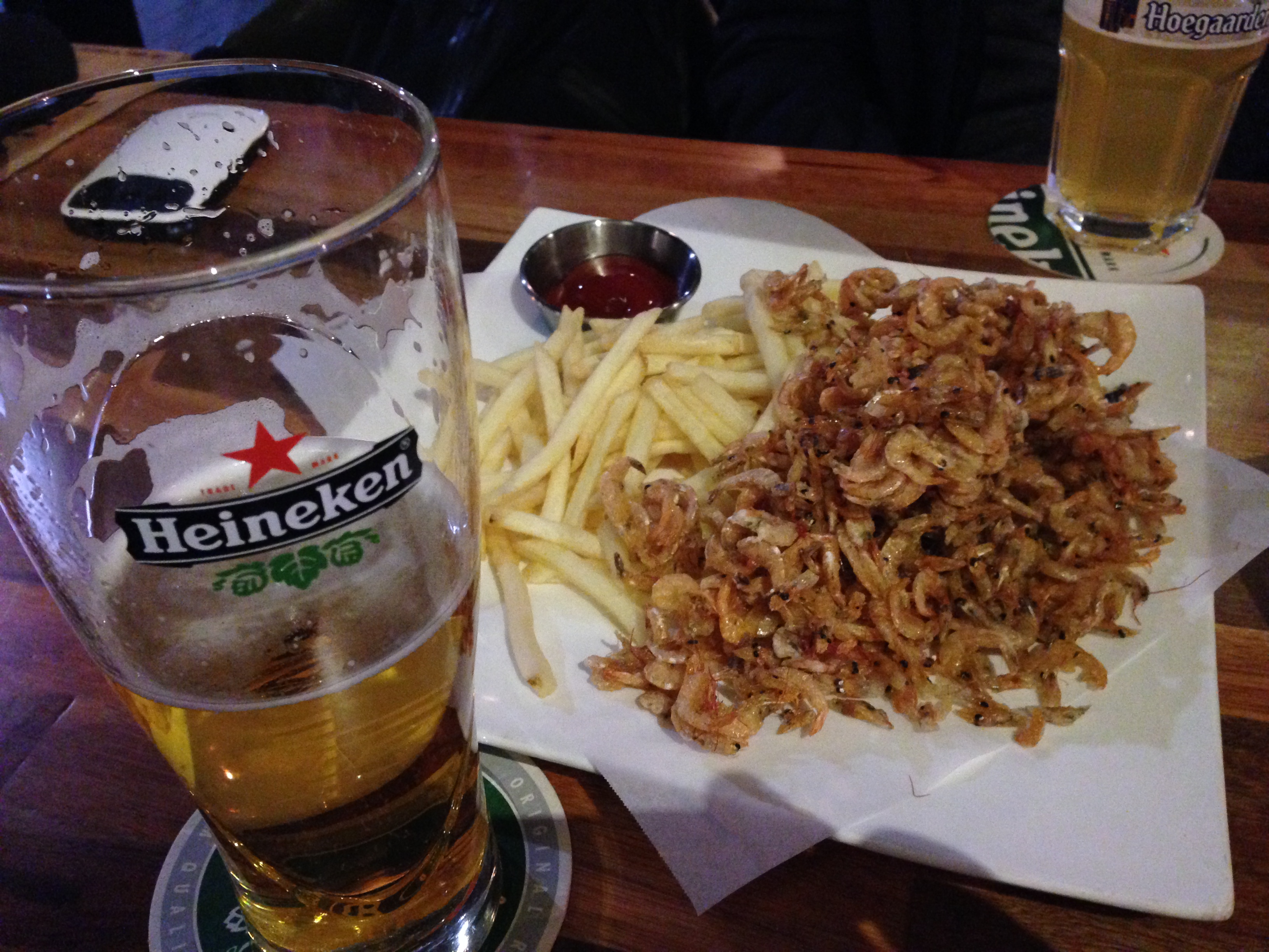 돈이 좀 부담이 되면 감자와 잔새우를 튀긴 안주를 시켜서 맥주만 계속 먹어도 된다.