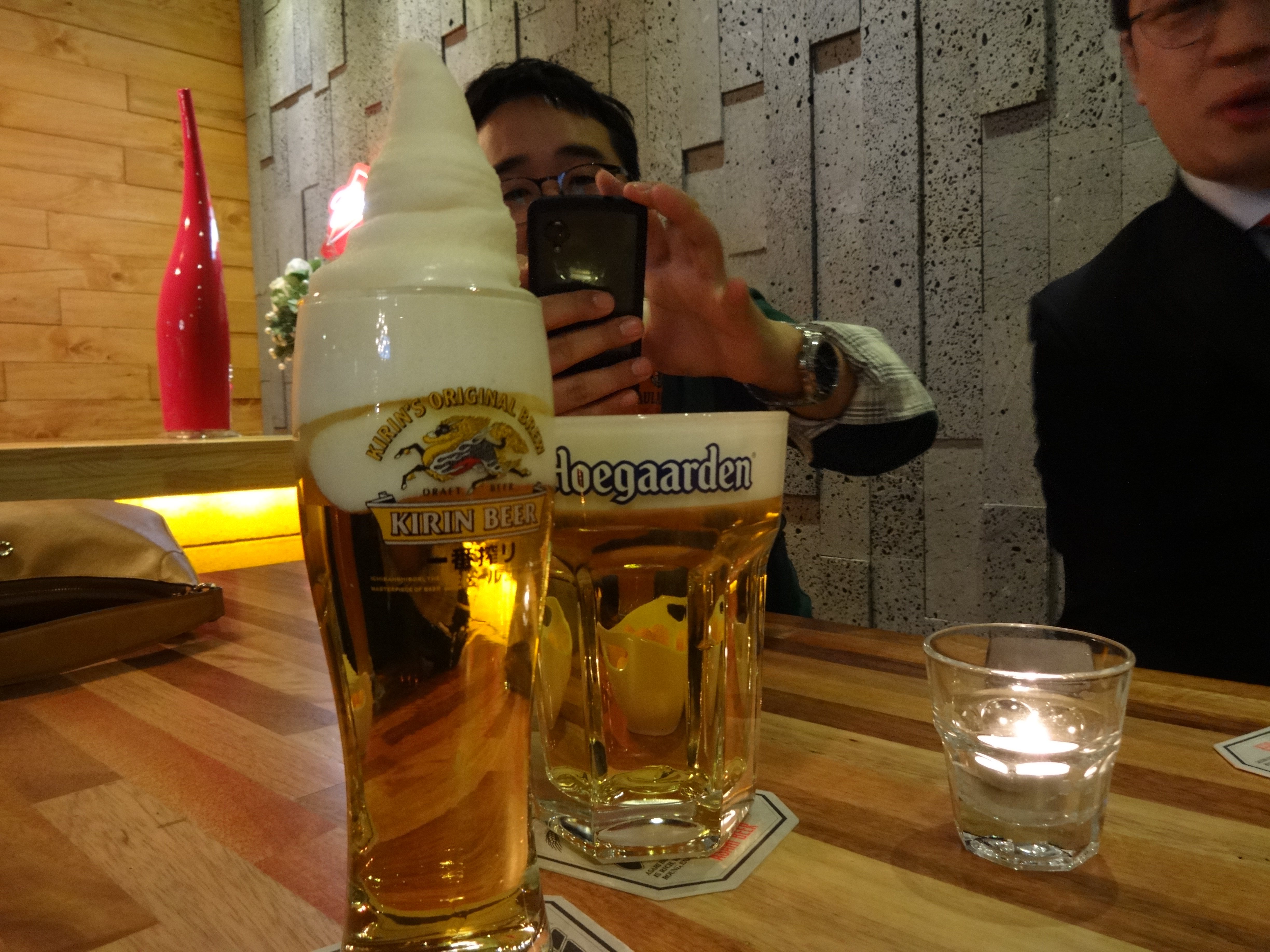 요즘 유행한다는(이미 유행이 끝났다는 주장도 있지만) ‘똥모양 술’, 기린 생맥주를 아이스크림처럼 얼려서 담아 주는 애도 구경할 수 있다.