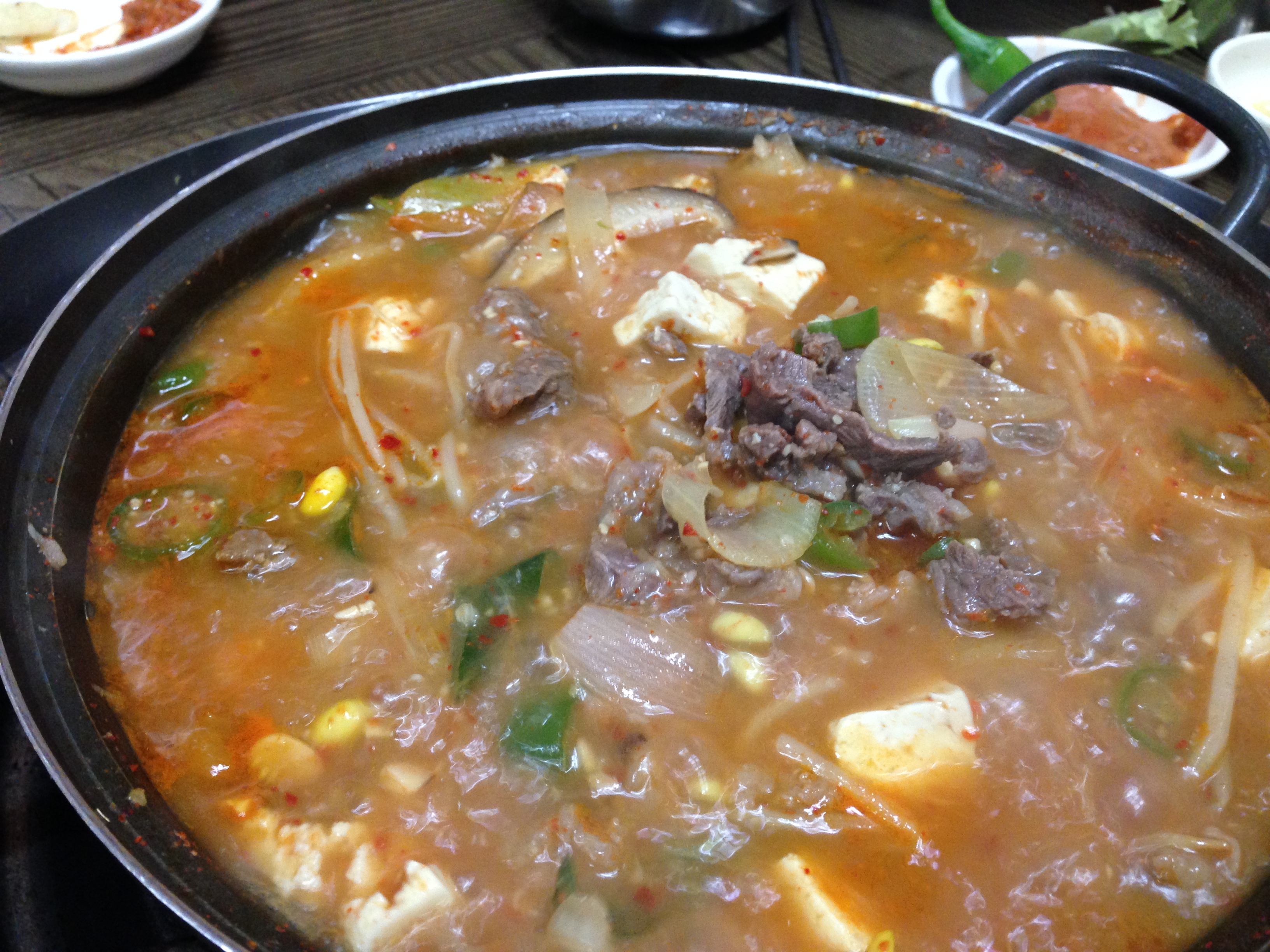 풍성한 쇠고기 조각이 들어가서 마치 쇠고기찌개를 먹는 듯한 착각에까지 빠진다.