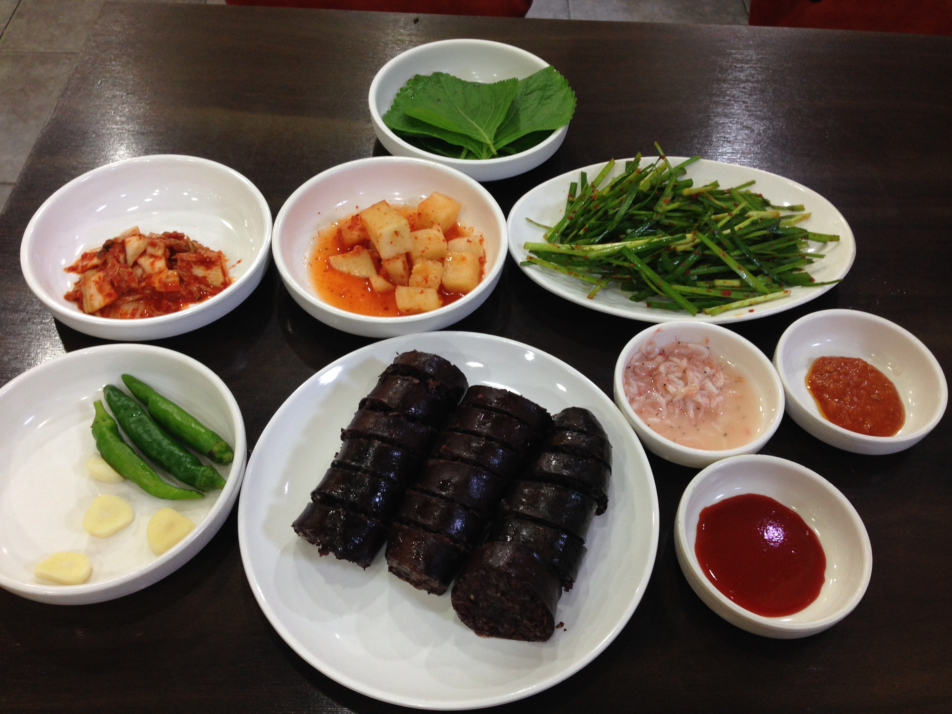 밑반찬은 딱히 특별해 보이지는 않은데 부추 겉절이가 비법 밑반찬인 듯하고 순대 양념장으로 특이하게 새우젓과 초장이 나온다.