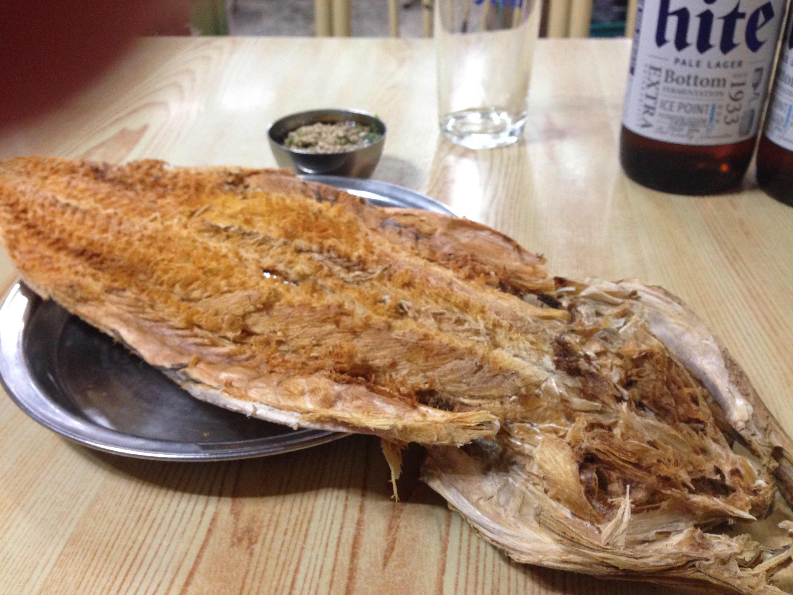 맥주도 일반 술집보다 싸지만 성인 팔뚝만한 ‘대형 황태포’가 9천원이라는 어마어마한 가격을 자랑한다.