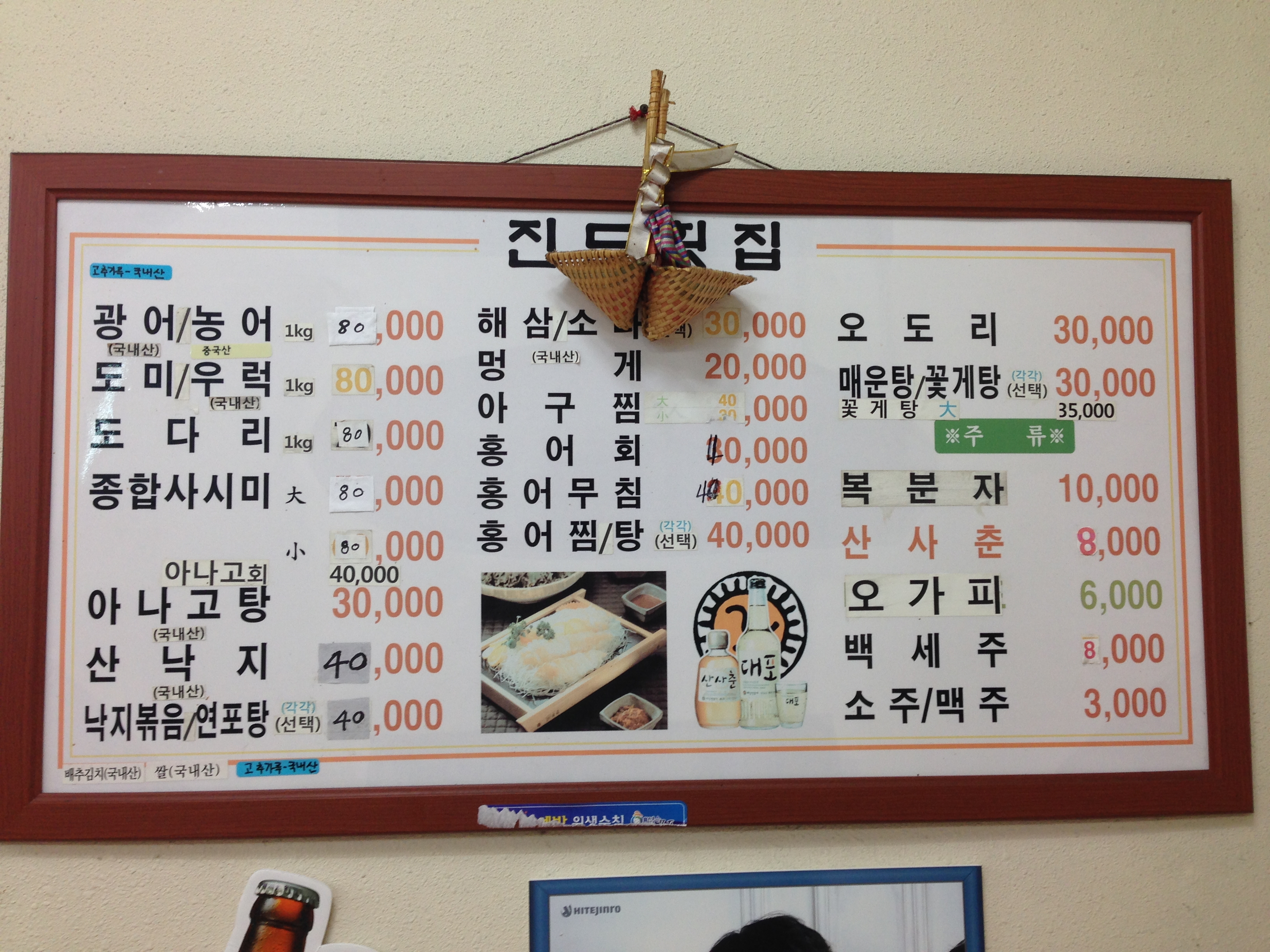 가격은 항구 앞임에도 불구하고 싸지는 않은거 같다. 하지만 신선도나 질이 뛰어나다는 것이 주인측의 설명이다.