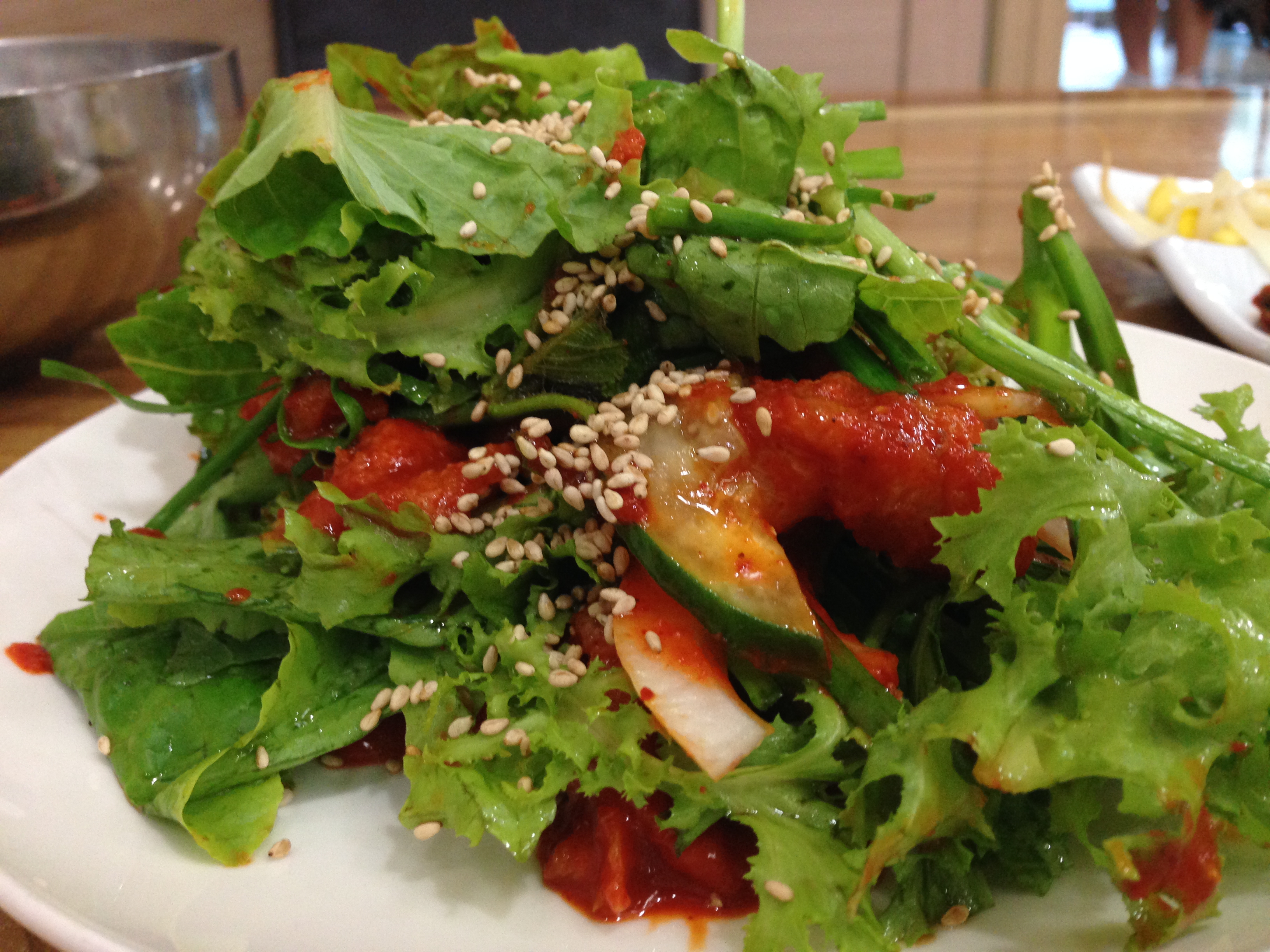 밑반찬은 다소 실망스럽다. 물론 갓김치와 아마도 어리굴젓까지, 있을 것은 다 있고 맛도 있지만 반찬의 양에서 좀 ‘남도스럽지는’ 않다.