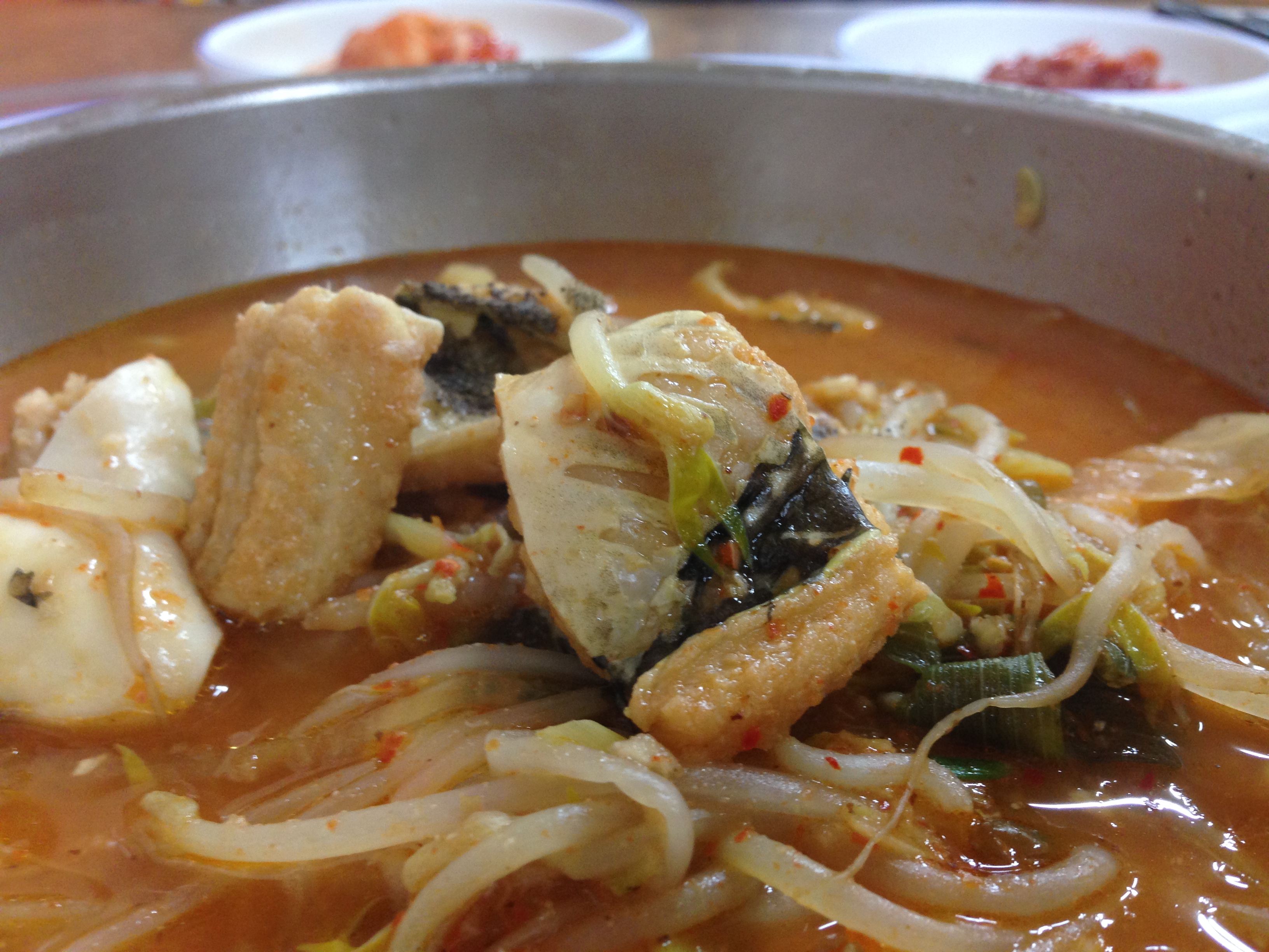 장어탕은 갯장어를 듬성듬성 썰어 콩나물 듬뿍 넣고 푹 끓인, 어떻게 보면 된장 베이스의 해장국같은 느낌에 후추의 맛도 더해지면서 중국풍의 맛도 난다.