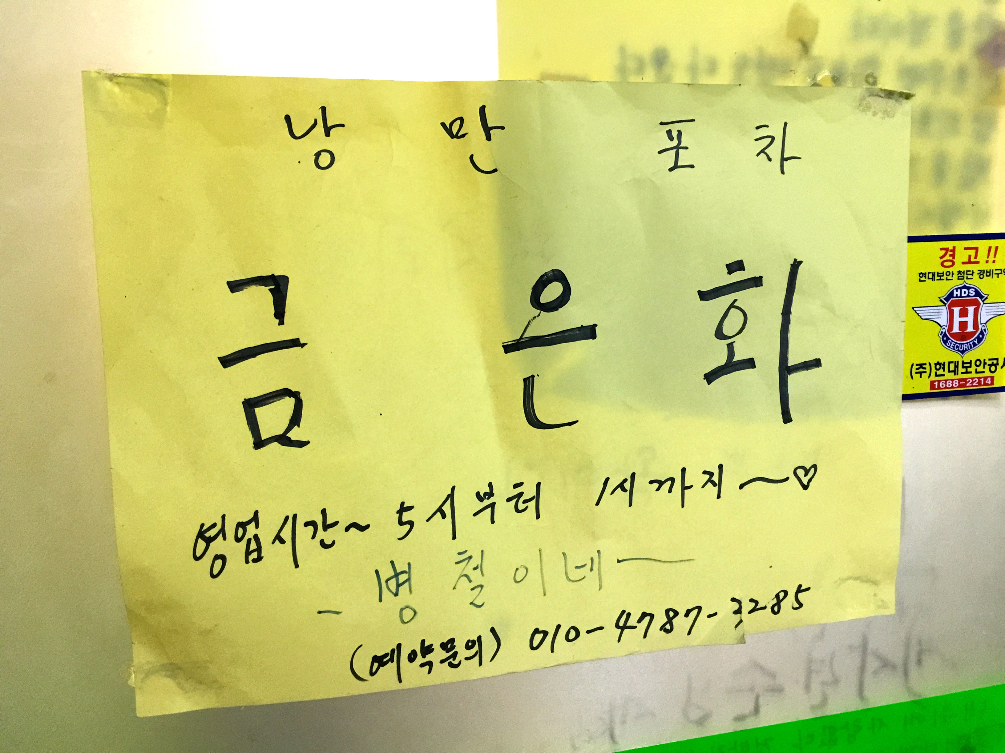떡볶이나 호떡 같은 거 말고 아저씨들이 고갈비에 멍게, 해삼 같은 애들과 쇠주를 걸치는 그런 ‘진짜’ 포장마차 말이다.