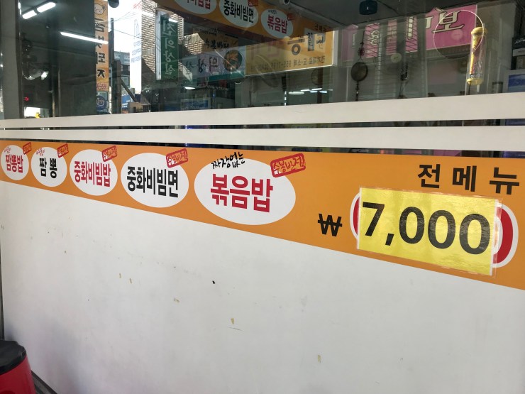 지금은 짬뽕과 중화비빔밥, 볶음밥 모두 7천원으로 통일됐고, 짜장과 우동 메뉴는 없어졌다.