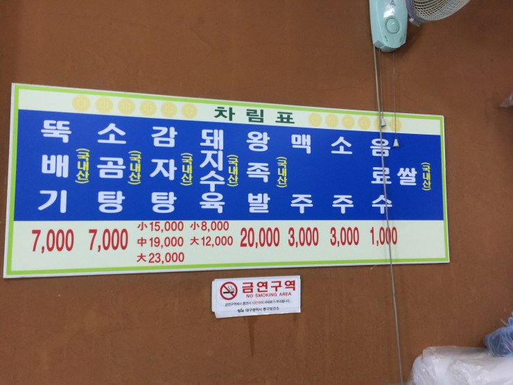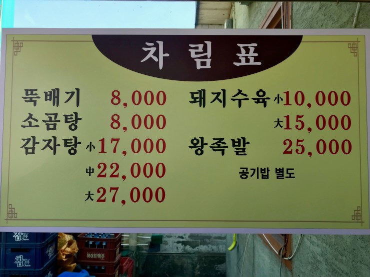지금은 뚝배기 8천원으로 천원 올랐고, 감자탕 소가 만7천원, 돼지수육 소가 만원으로 2천원씩 올랐다.
