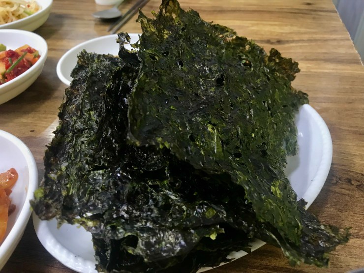 살짝 구운 생김을 간장에 찍어먹는 맛도 일품이다.