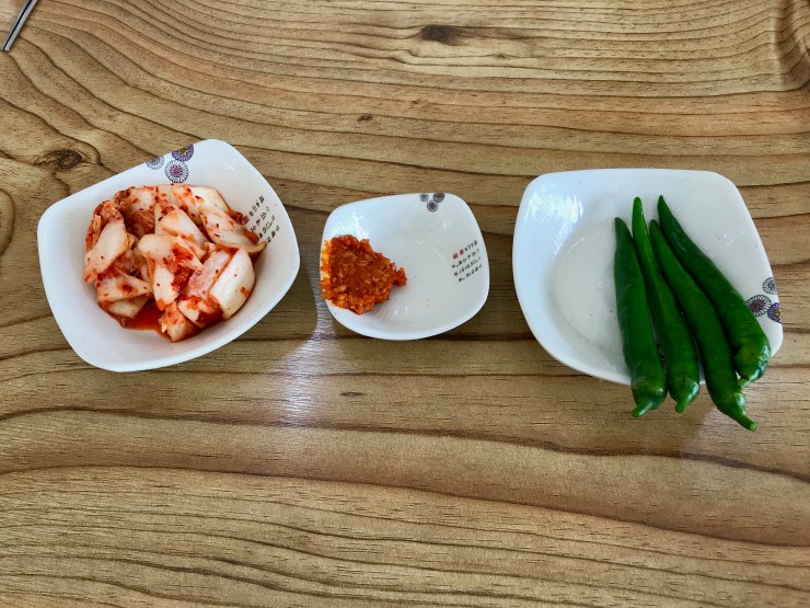 고추는 매운 청양고추가 나오고 김치는 겉절이 김치는 아니지만 적당히 아삭거리고 신선한 맛이 난다.